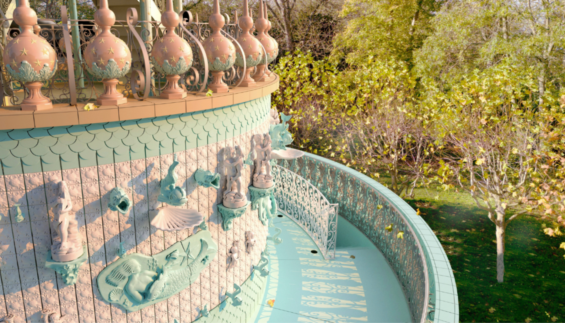The sculptural pavilion at Waddesdon Manor, designed by Portuguese artist Joana Vasconcelos, will eventually be clad entirely in ceramic tiles