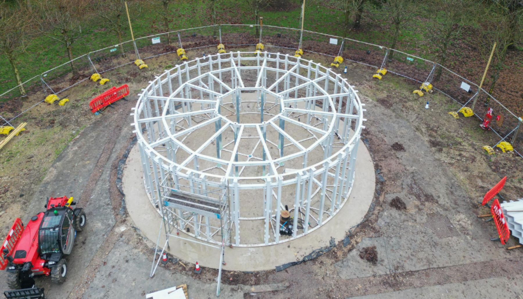 Construction has begun on a 12-metre-high sculptural pavilion at Waddesdon Manor, a historic house in Buckinghamshire, and will eventually resemble a large wedding cake.