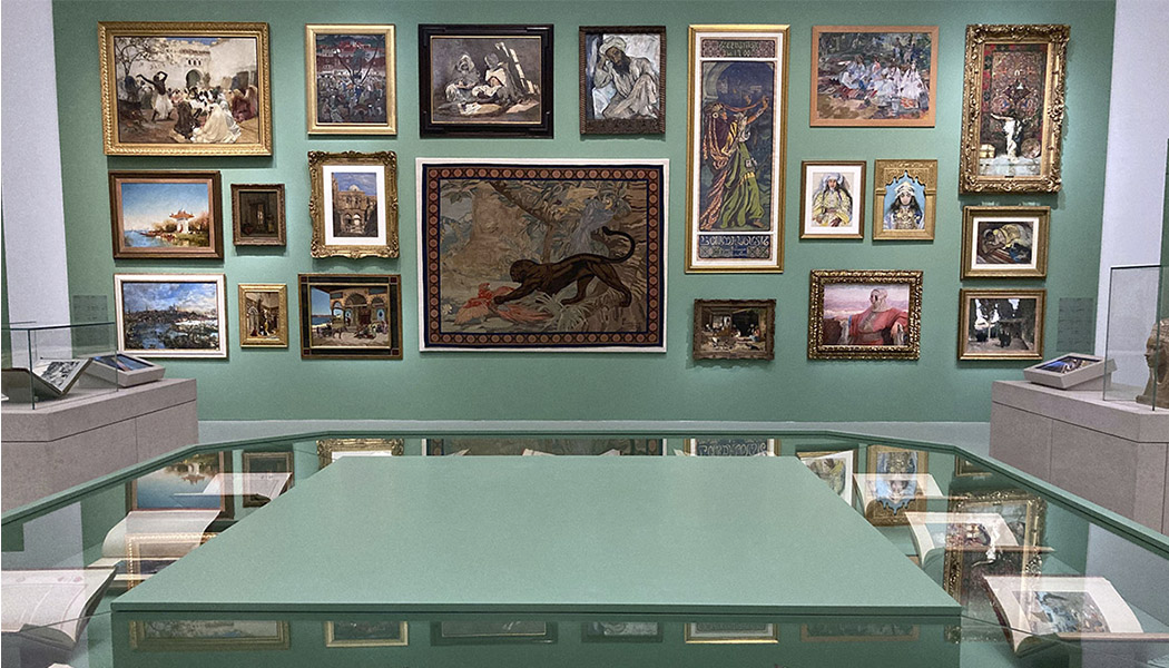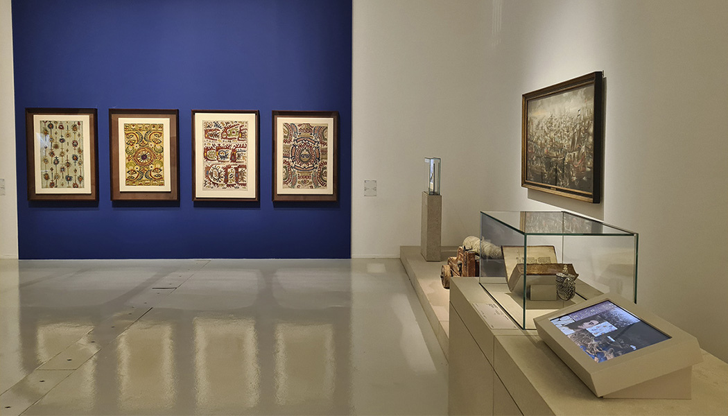 The 237 artefacts displayed represent a large collection of paintings on canvas, jewellery, tapestries, costumes, film props, books, manuscripts, photographs, decorated ceramics, glass, and metal. The artefacts are combined with almost 60 audiovisual and interactive resources that support the narrative and allow visitors to approach and interact with the objects.
