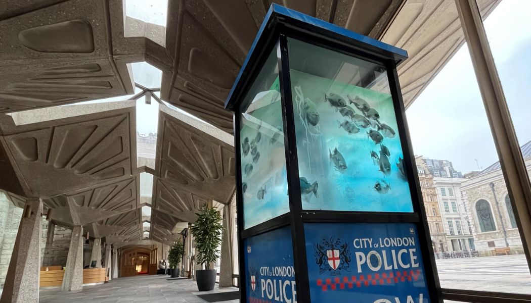 City of London Police box featuring piranha artwork moved to secure storage before museum’s Smithfield opening, spanning collection from Roman graffiti.