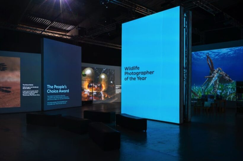 Award-winning Wildlife Photographer of the Year exhibition debuts in Cheshire at Chester Zoo, showcasing 100 unseen images in a display designed by Mather & Co.