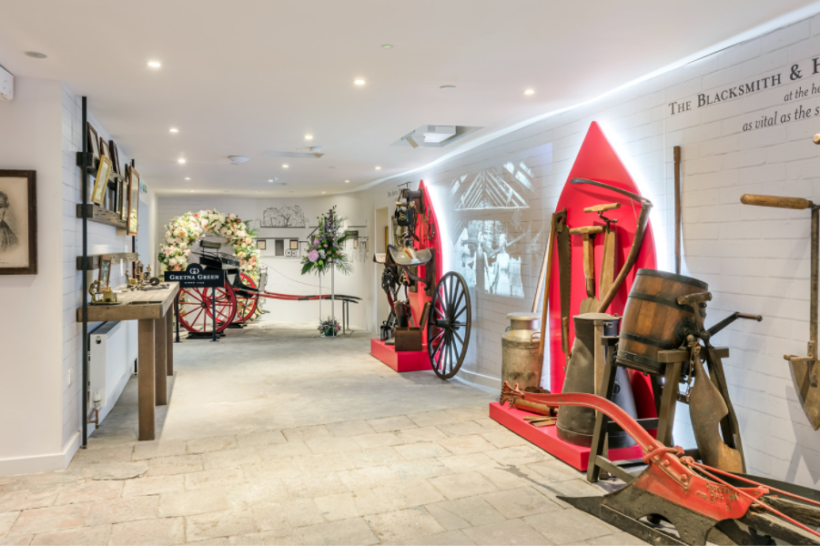 The Experience allows visitors to get up close to original objects including marriage registers, furniture, and the wedding dress of Dorothy Bell (grandmother of the owner). In the centre of the experience, visitors are immersed in a 360-degree audio-visual film, ‘The Unbreakable Bond’, that brings the history of the site to life around the original anvil. There are thirteen audio-visual experiences in total for visitors at the home of romance.