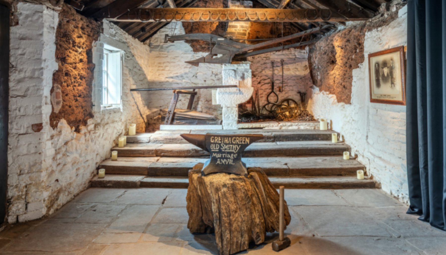 Gretna Green has been welcoming weddings for over 260 years, following the introduction of the 1754 Marriage Act in England, which meant couples had to be 21 years of age to marry without the consent of their parents – previously no consent was required if you were above the age of 16. In Scotland, a couple over the age of 16 only had to declare their intentions to be husband and wife in the presence of two witnesses, so many young couples fled over the border to be married at the first place they encountered, the blacksmith’s shop in Gretna Green.