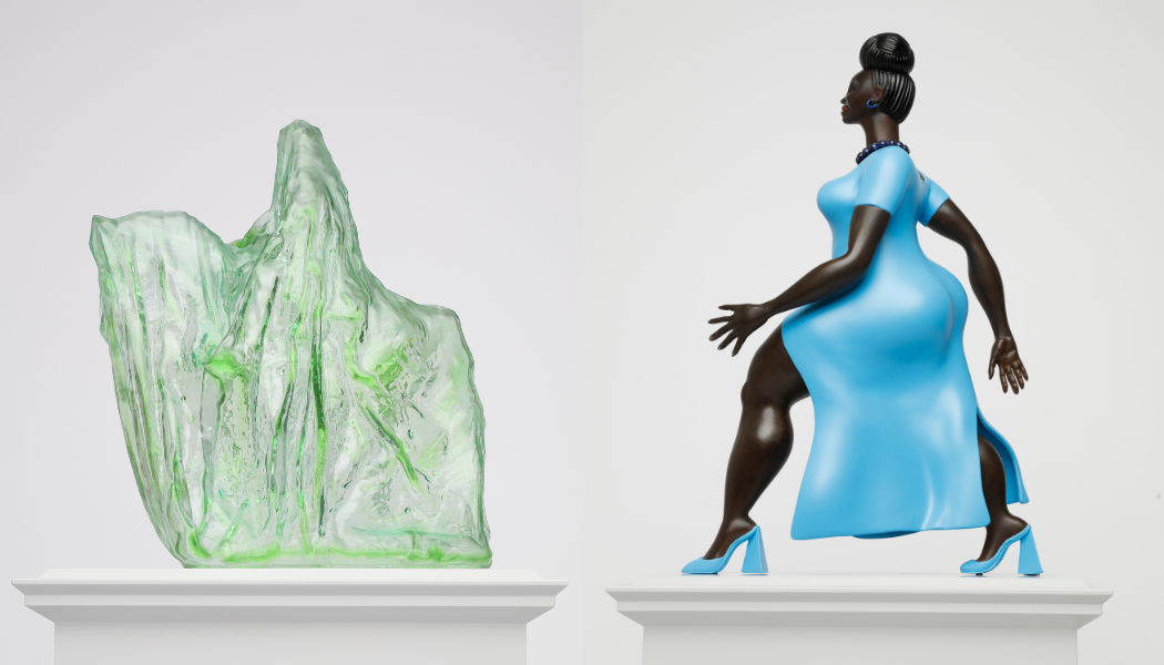 Image: L-R Andra Ursuta, Untitled, 2024; Tschabalala Self, Lady in Blue, 2024 (James O Jenkins)