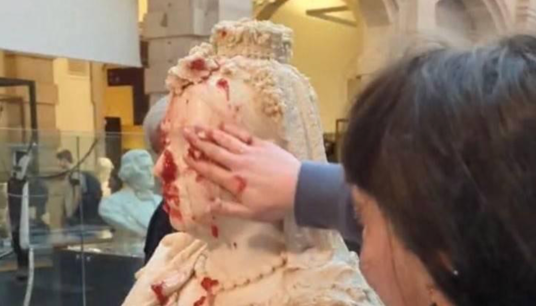 The Glasgow museum was temporarily closed at lunchtime on Sunday 3 March after protestors covered the bust of Queen Victoria in porridge and jam and spray-painted an offensive word on the plinth below the statue.