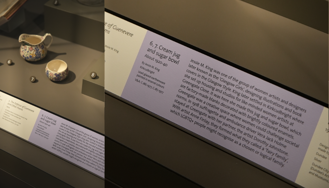 The labels have been co-written by V&A Dundee’s LGBTQ+ Working Group with an external advisory group and have been created to illuminate histories and expand the contexts of ten objects from LGBTQ+ perspectives.