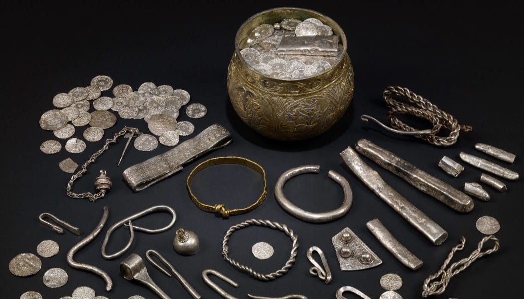 The programme also includes the Coppergate Helmet, an Anglo-Saxon piece of armour discovered beneath Coppergate in York that predates Viking arrival in the region. Two major archaeological finds, the Bedale Hoard and Vale of York Hoard, are available for adoption. Recent metal analysis of the Bedale Hoard has revealed compounds originating from locations spanning Western Europe to Scandinavia and extending to the Islamic Caliphate. Both hoards contain internationally sourced materials including Irish silver bracelets, Russian neck rings, coins, a silver gilt vessel, gold brooches and silver ingots.